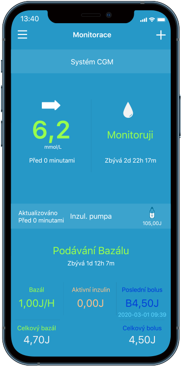 Použijte spolu s CGM Medtrum. Sledujte hladinu svojí glykémie kdykoliv a kdekoliv.
